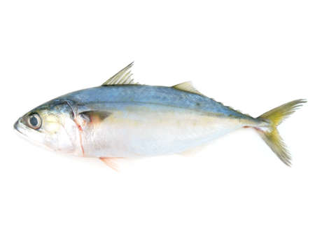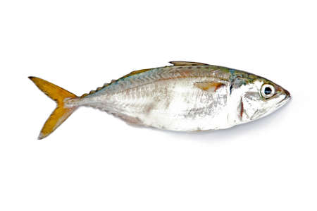 Close up view of Fresh Finletted Mackerel Fish or Torpedo Scad Fish Isolated on White background,Selective focus.