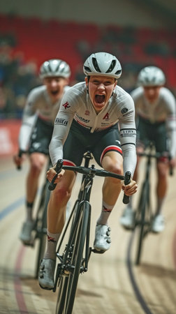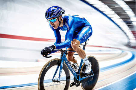 Dynamic olympic track cycling blurred image captures men s athletic prowess in high speed race