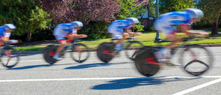 Group of cyclists riding on the road with motion blur effect. motion blur