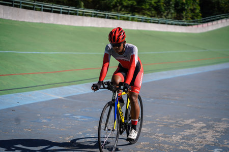 Jakarta, Indonesia - August 20, 2018 : Japan track cyclist during Jakarta Palembang Asian Games 2018.