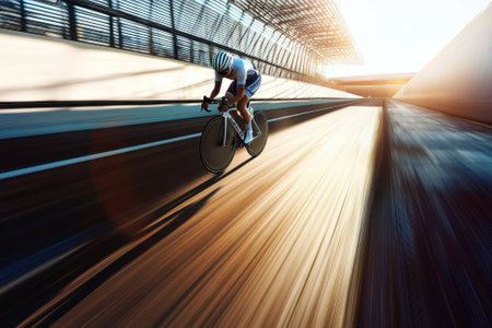 Cyclist Racing on Track with Blurred Background Under Evening Light