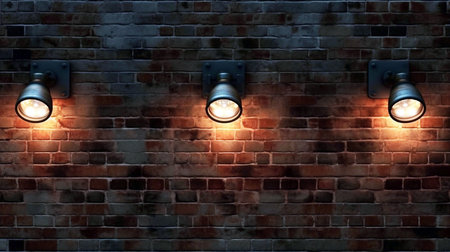 AI Generated. Illuminated pathway with numerous evenly spaced lights on tile surface
