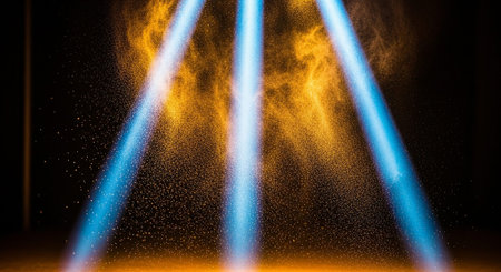 stage lighting effect. Stage lights background. Abstract blue and yellow stage lights.