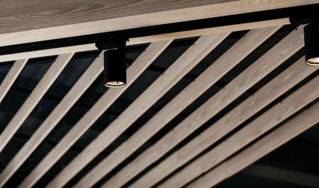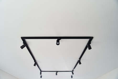 Lighting equipment on the wall in the living room. Spotlights under the ceiling. Track LED lighting system