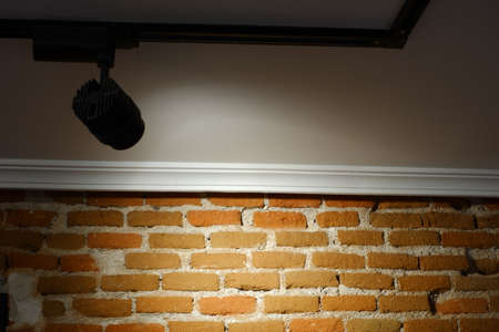 Spotlights under the ceiling on the wall. Track LED-lighting system