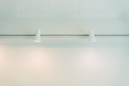 Lighting technology in studio with moving track spotlights and ceiling lamps