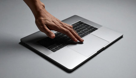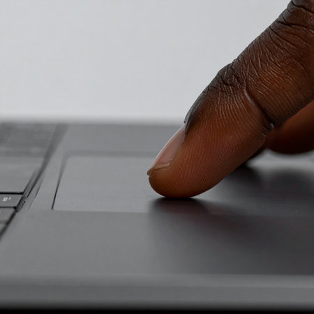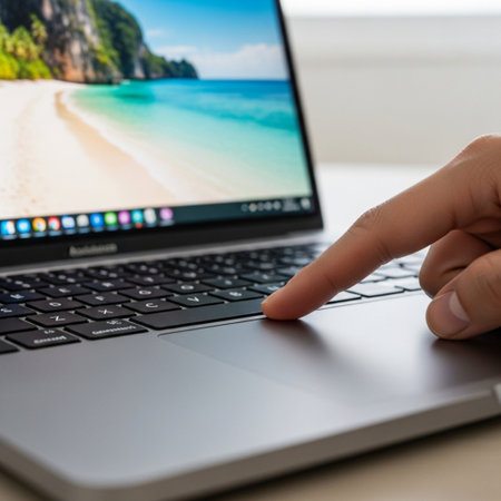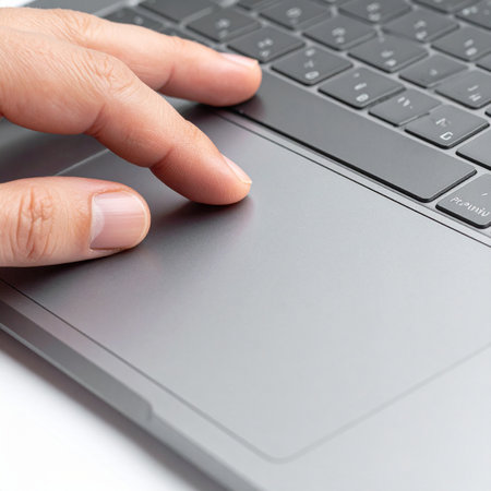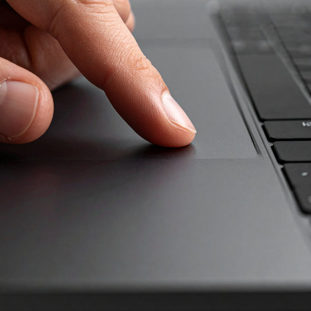 A person's finger gently glides across a laptop's touchpad, navigating the digital world with precision.