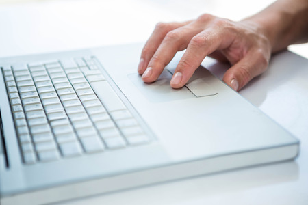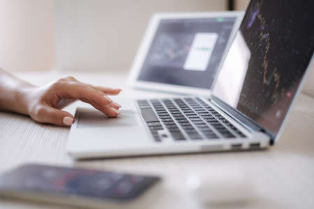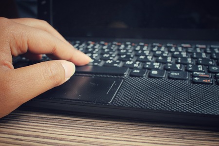 Female using black laptop for working. surfing internet using touchpad. business concept