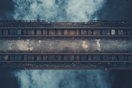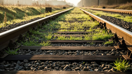 Close-up of train tracks, symbolizing journey and exploration. AI generative.