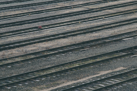 Several parallel railway tracks with ballast and sleepers in Amsterdam the Netherlands Holland