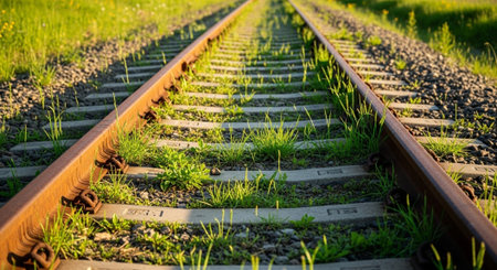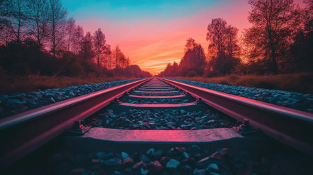 Explore the beauty of tranquil railway tracks at sunset, showcasing the harmony of nature and travel. Ideal for themes of exploration and serenity.