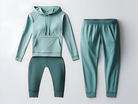 Blue sports tracksuit and sneakers on solid background