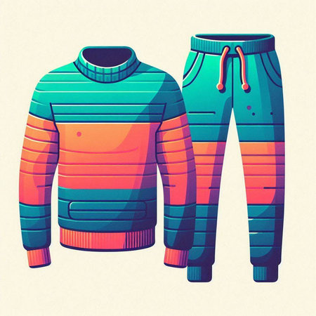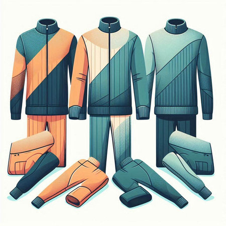 Colorful winter sportswear, vector illustration in retro style.