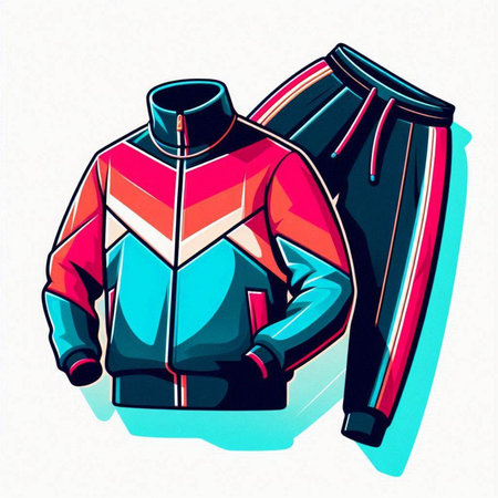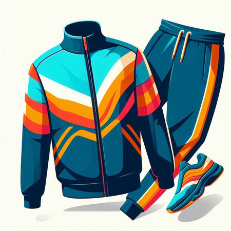 Vector illustration of sportswear and sneakers on abstract colorful background.