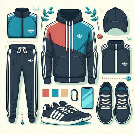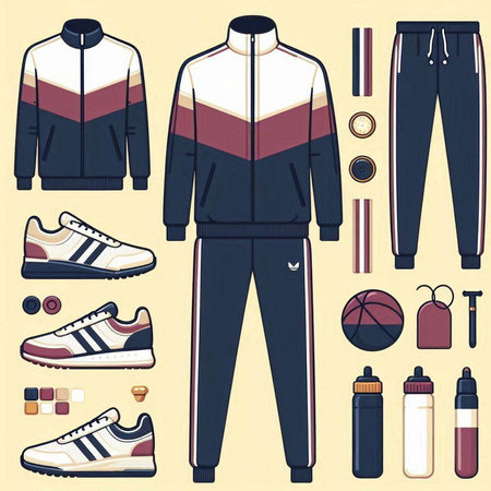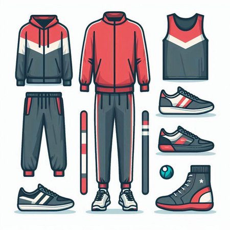 Sportswear set. Vector illustration of sportswear and sneakers.