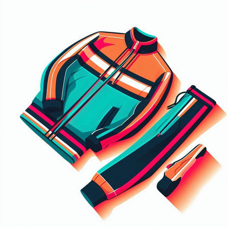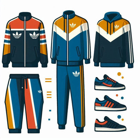Vector illustration of sportswear and sneakers on abstract colorful background.