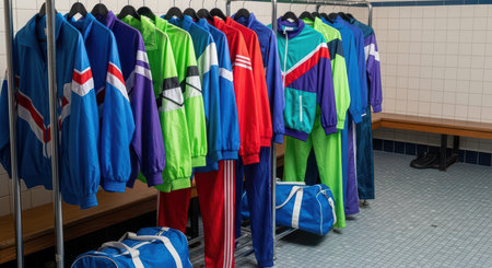 Beautifully arranged sportswear is stacked on a clean table, highlighting the simplicity and functionality of modern athletic clothing.