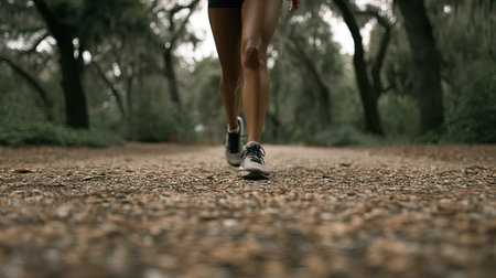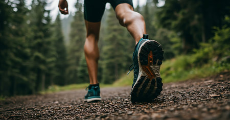 Runners Legs on Forest Trail. Fitness and Vitality Concept. Ai generated