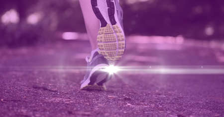 Composition of woman's legs running with glowing light and pink tint. sport, fitness and active lifestyle concept digitally generated image.