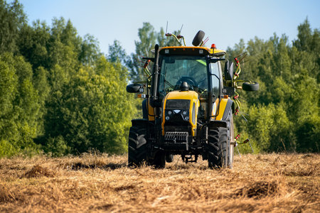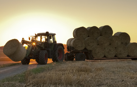 tractor driven hay rolled after seasonal harvesting