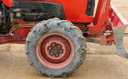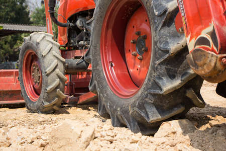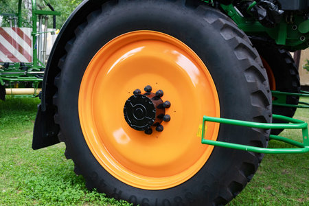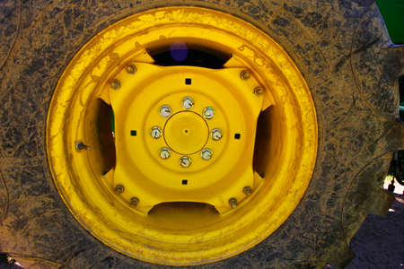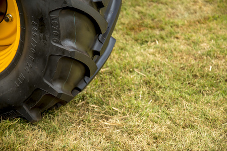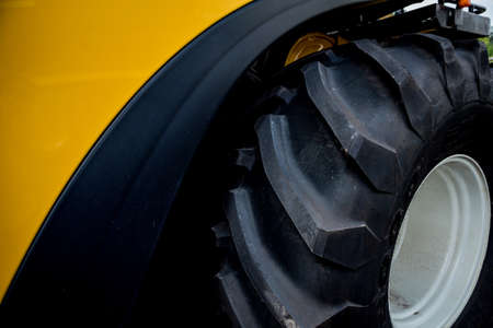 Close up of tractor tire wheel, agriculture background image