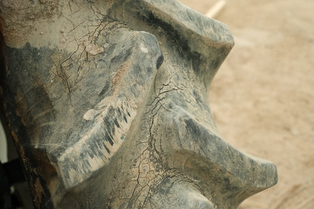 dirt on close up shot of tracktor wheel