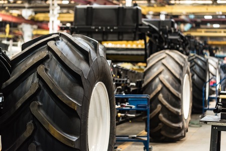 New wheel of a combine harvester close-up.