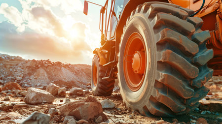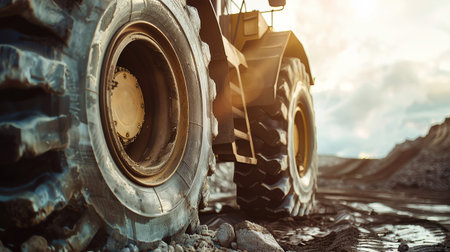 close-up shot of heavy construction machinery wheel, created with generative ai