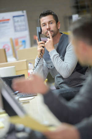 A foreman talking over the phone