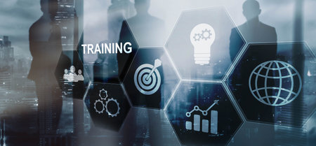 Business training concept. Training Webinar E-learning. Financial technology and communication concept