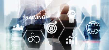 Business training concept. Training Webinar E-learning. Financial technology and communication concept.