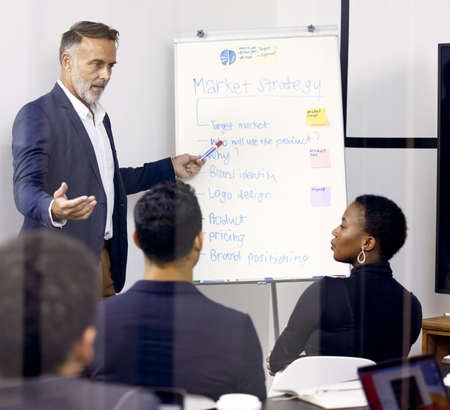 Do you understand that concept. Shot of a mature businessman giving a presentation in a boardroom at work.
