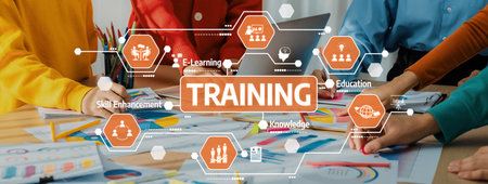 A vibrant training session showcasing collaborative strategies for skill enhancement and e-learning. Participants engage in knowledge sharing and creative brainstorming in a dynamic workspace.