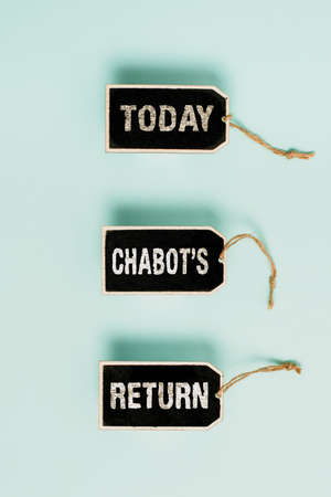 Conceptual caption Chabot S Return. Conceptual photo the come back of conversation via auditory or textual method Collection of Blank Empty Sticker Tags Tied With A String For Information Label Sign