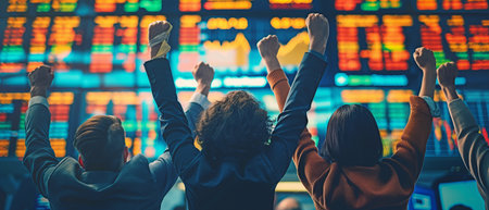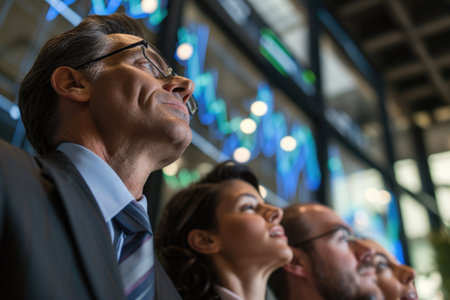 Group of Promising Stock Exchange Representatives Honouring a Successful Investment Bid on a Securities Market,