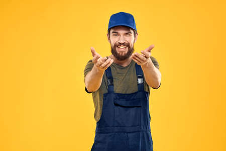 man in work uniform uniform professional work lifestyle delivery service blue background