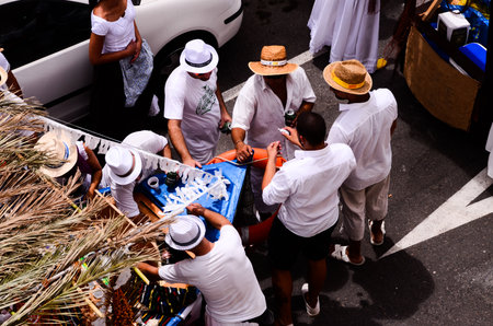 Saubara, Bahia, Brazil - June 12, 2020: Candomble members dancing and singing at the religious festival in Bom Jesus dos Pobre district, Saubara city.