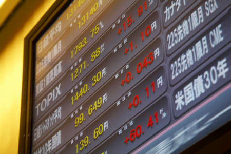 Display of Stock market quotes on display in stock exchange, stock exchange