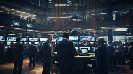 Generative AI Stock exchange trading floor with stockbrokers interacting, making deals, and communicating on the phone