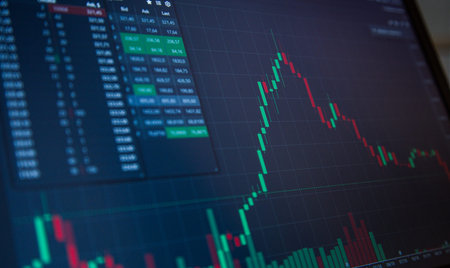 Shallow depth of field (selective focus) with details of a candlestick chart on a computer screen.