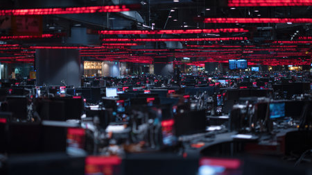 A spacious room containing a multitude of computer monitors arranged in a grid-like pattern, Time-lapse photo of stock market trading floor, AI Generated