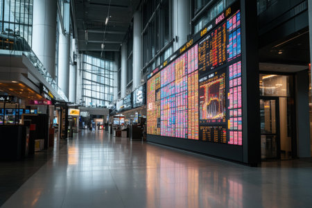 Stock Market: Interior of an airport terminal with information board. Toned.