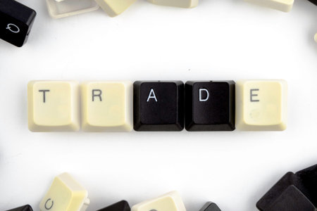 computers and computer technologies in industries and fields of human activity - concept. trade on a white background from the scattered keys of the computer keyboard lined the word - trade