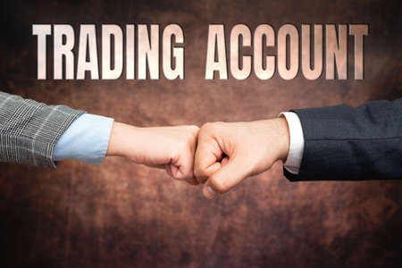 Text caption presenting Trading Account. Business idea investment account having securities cash or other holdings Two Professional Well-Dressed Corporate Businessmen Handshake Indoors