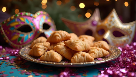 Purim, Jewish holiday of remembrance, is associated with carnival mask and hamantaschen cookies