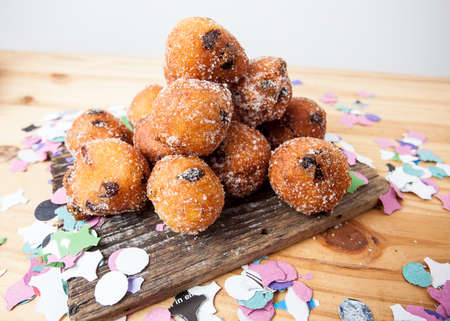 Typical Carnival italian Fritters: Sweet Dough Balls with Icing Sugar