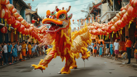 Chinese Street Celebrations: Bustling streets filled with colorful decorations and lively parades.Generated with AI