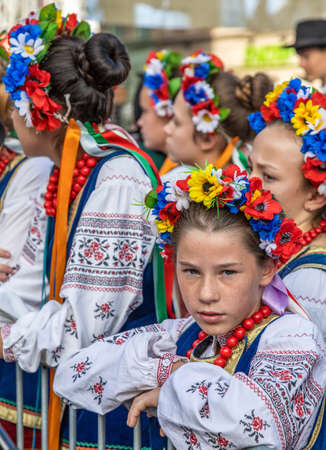 TIMISOARA, ROMANIA - SEPTEMBER 22, 2019: Young Ukrainians in traditional costume, present at Festival of Ethnic Minorities organized by the City Hall.