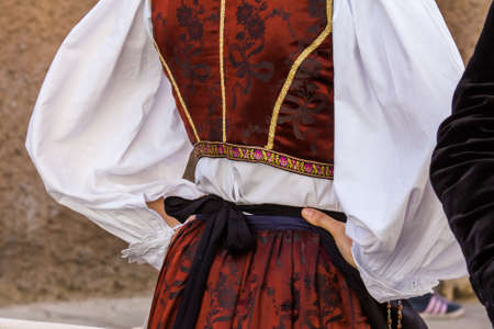 CAGLIARI, ITALY - MAY 1, 2016: 360 Feast of Sant'Efisio, detail of a traditional Sardinian costume - Sardinia