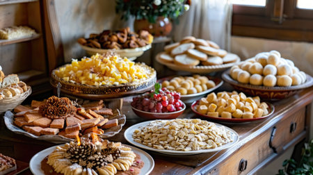 A colorful assortment of regional sweetmeats, each representing a different culture and tradition, displayed on a decorative table.